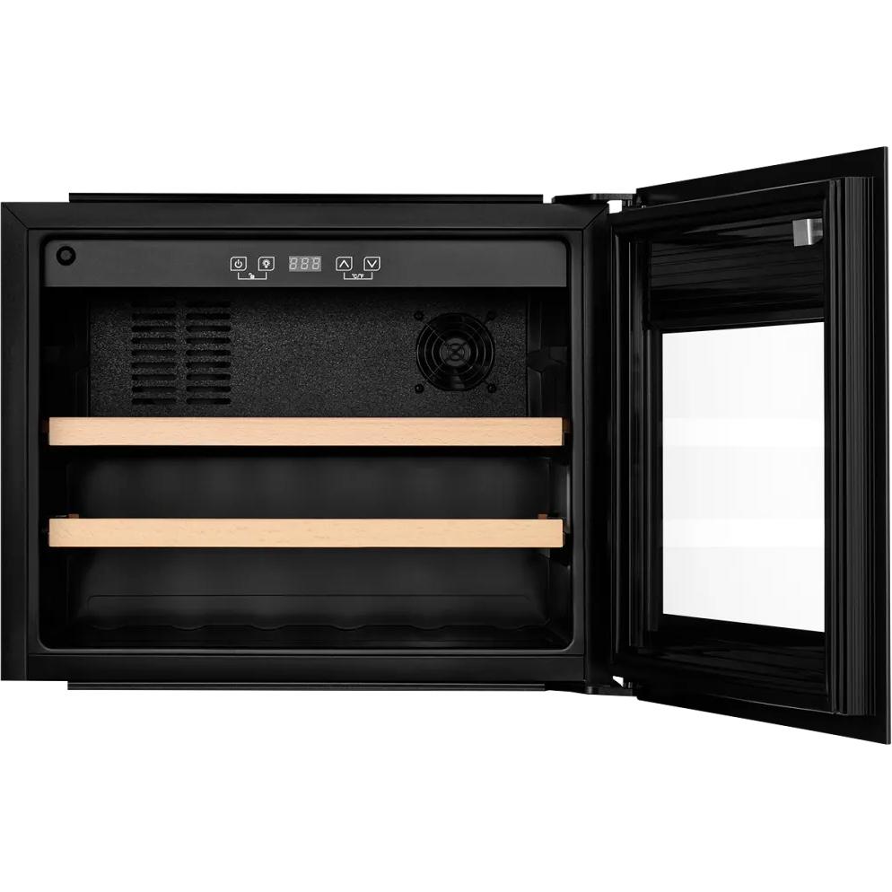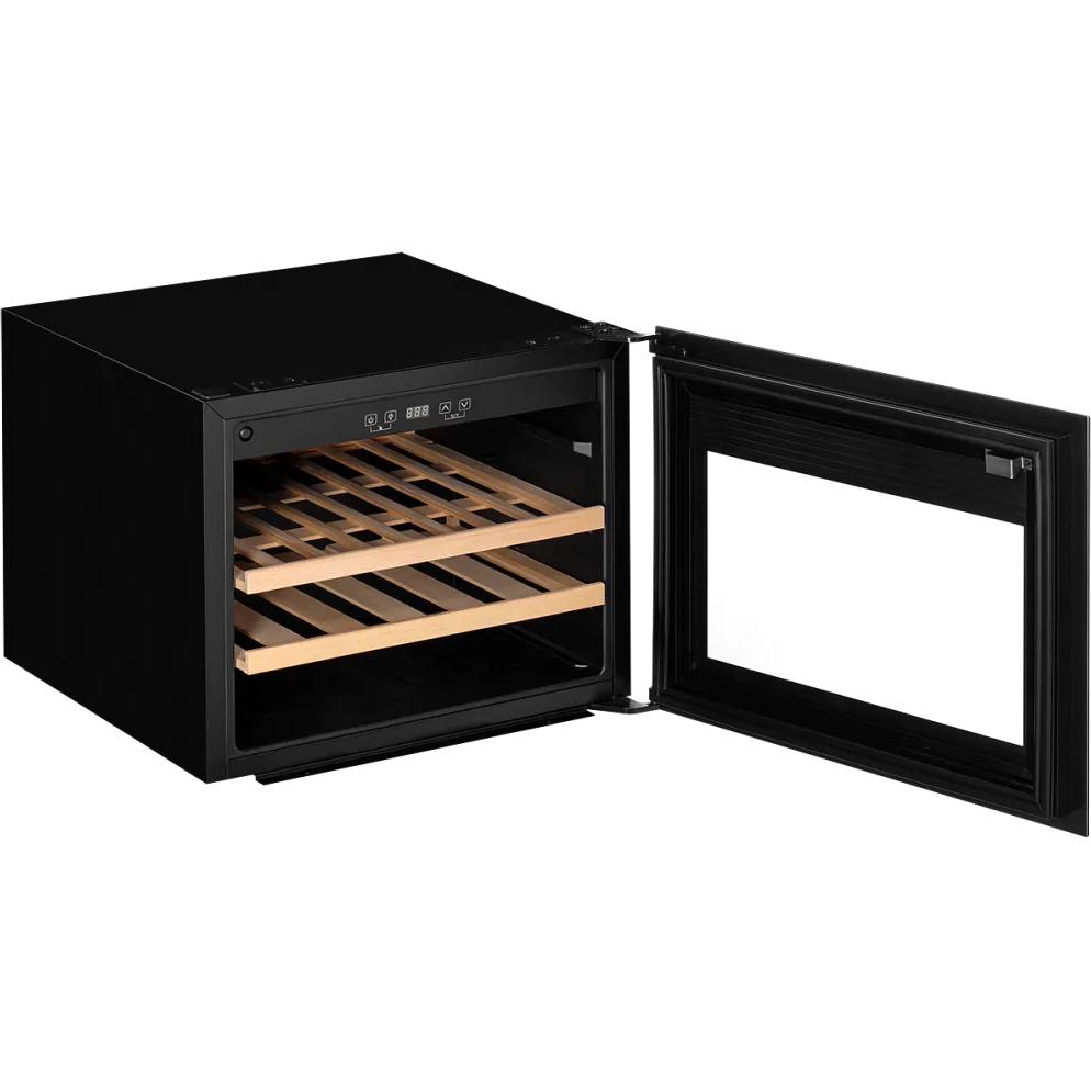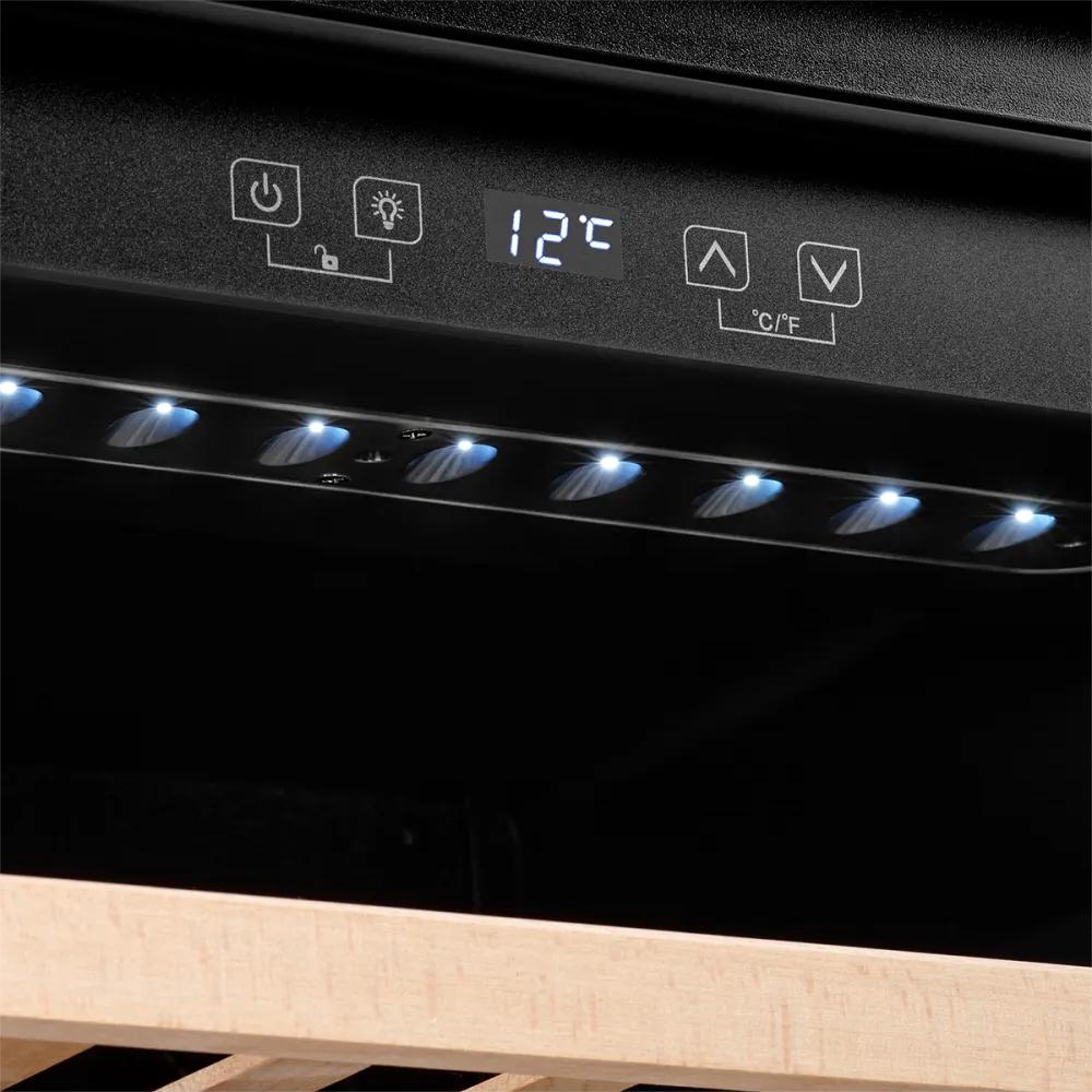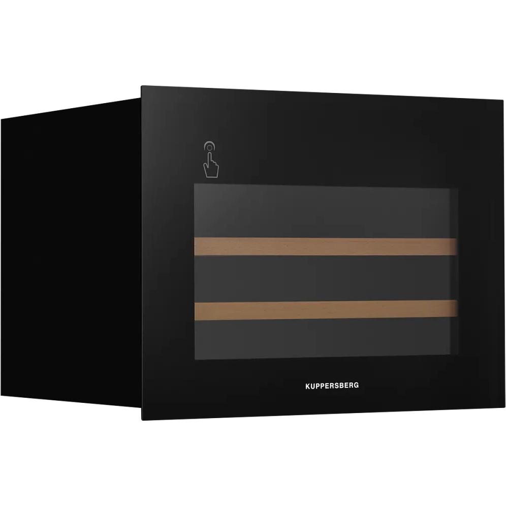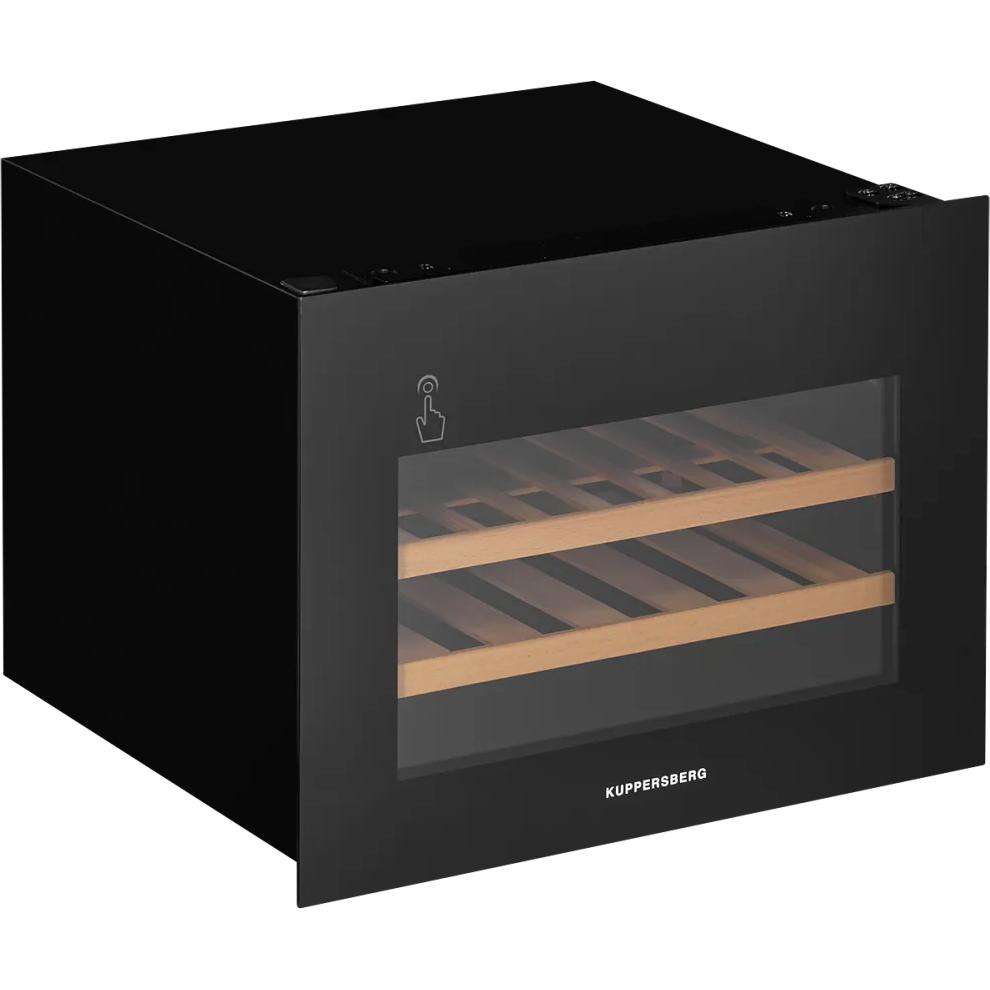 - Винный шкаф KUPPERSBERG/ Винный шкаф KUPPERSBERG, встраиваемый, High-Tech, объем 62 л, вместимость 28 бутылок, диапазон температуры 5-20 градусов, сенсорное открытие двери, 2 полки из бука, LCD дисплей, уровень шума 40 дБ, цвет черный