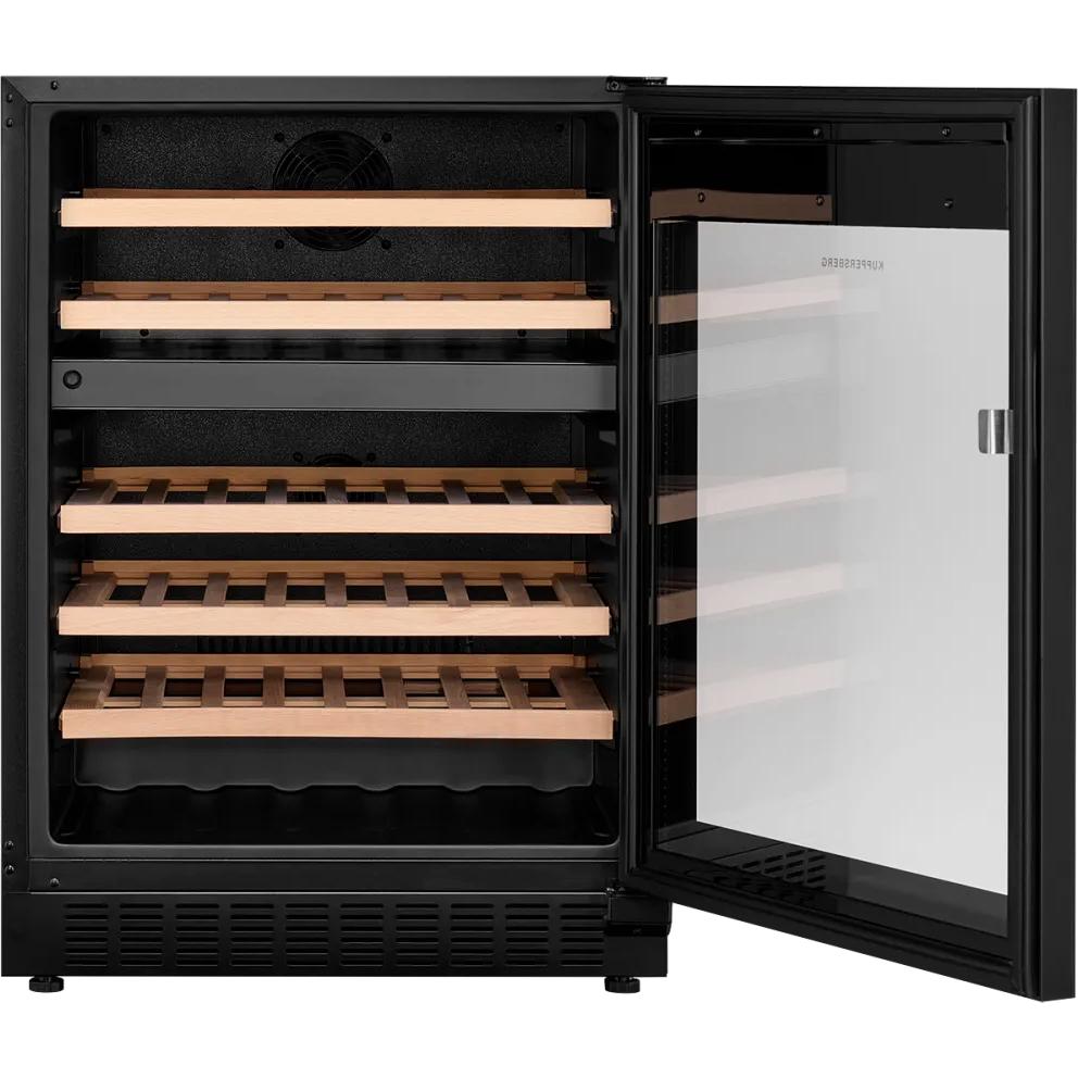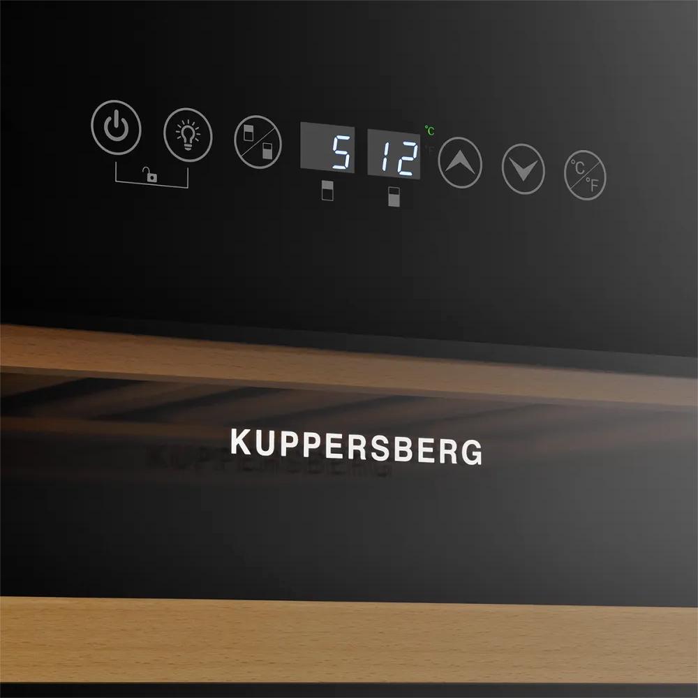 - Винный шкаф KUPPERSBERG/ Винный шкаф KUPPERSBERG, встраиваемый, High-Tech, объем 129 л, вместимость 46 бутылок, диапазон температуры 5-22 градусов, сенсорное открытие двери, 4 полки из бука, LCD дисплей, уровень шума 40 дБ, цвет черный