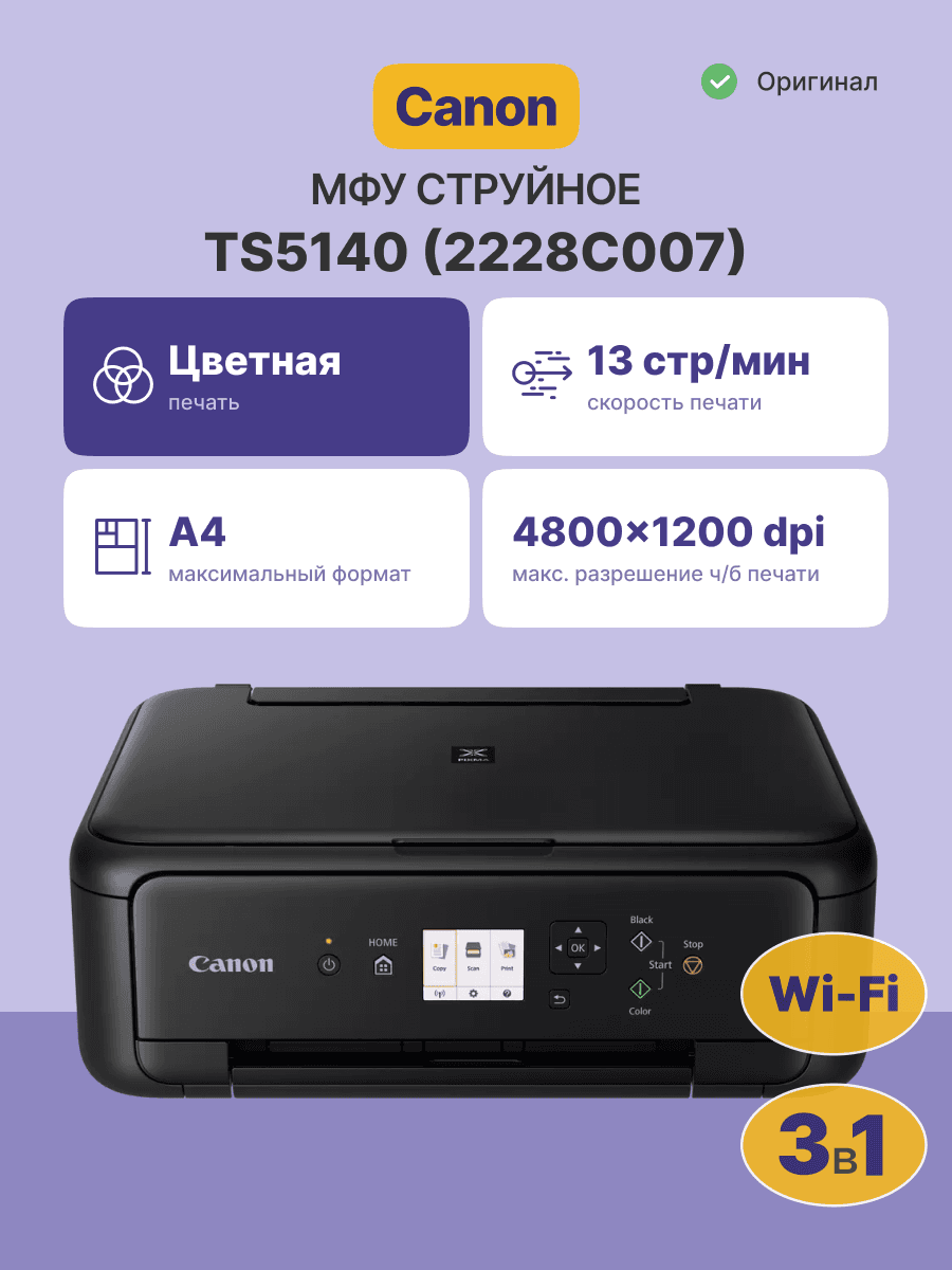 - МФУ струйное цветное А4/ Canon PIXMA TS5140